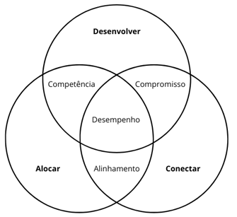 Ao focar nesses três elementos, os vínculos entre esses domínios geram competência, compromisso e alinhamento, que, por sua vez, melhoram o desempenho nos negócios.