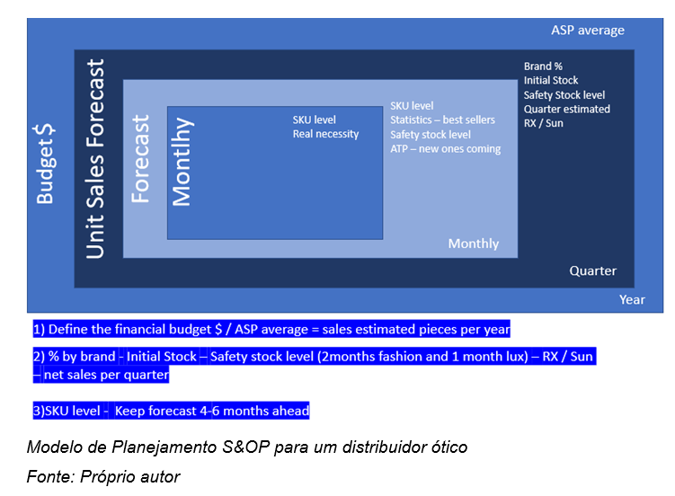Esse trabalho foi escrito com a grande missão de mostrar que para gerenciar bem a logística e o supply chain do segmento ótico no mercado brasileiro, o grande segredo operacional de sucesso é um planejamento S&OP bem estruturado, foco em estratégias bem definidas para atingir os objetivos da empresa, claros volumes por marca, região e categoria, conhecer profundamente sua cadeia de abastecimento, os riscos e os lead times, trabalhar forte a gestão estatística da vendas, criar métodos de análise através da curva ABC, definir seus rankings e quantidades de compras dentro dessas premissas, e controlar muito bem seu estoque.